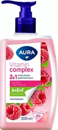 Крем-мыло для рук и тела 2 в 1 Aura Vitamin Complex Малина и витамины, 500мл