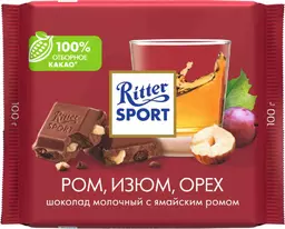 Шоколад молочный Ritter Sport Ром, изюм, орех, 100г
