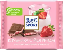 Шоколад молочный Ritter Sport с начинкой Клубника с йогуртом, 100г