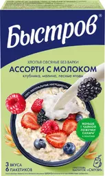 Каша овсяная Быстров Ассорти с молоком Клубника, малина, лесные ягоды без варки, 6×40г