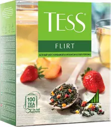 Чай зелёный Tess Flirt с клубникой и ароматом Белого персика, 100×1.5г