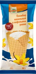 Мороженое пломбир Глобус Ванильный в вафельном рожке 15%, 90г