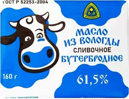 Масло сливочное из Вологды Бутербродное 61.5%, 160г