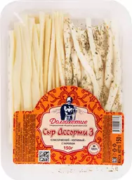 Сыр слоистый Долголетие Ассорти №3 классический - копченый - с укропом 45%, 150г