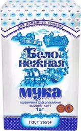 Мука пшеничная хлебопекарная Белонежная высший сорт, 1кг