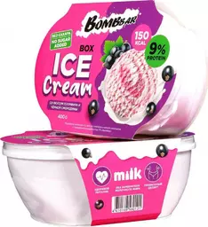Мороженое молочное Bombbar со вкусом пломбира и черной смородины с пониженной калорийностью без сахара, 400г
