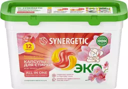 Капсулы для стирки всех видов тканей Synergetic Магическая орхидея, 12шт
