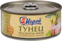 Тунец желтоперый 5 Морей филе в оливковом масле, 140г