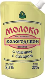 Молоко сгущённое цельное Вологодские молочные продукты с сахаром 8.5%, 270г