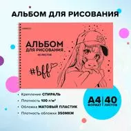 Альбом для рисования, 40 листов, пластиковая обложка, на спирали, в ассортименте