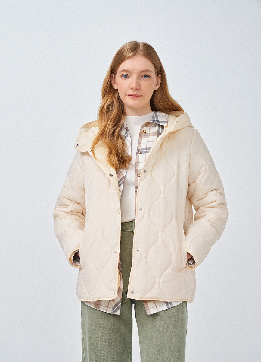 Куртка утепленная бежевая с фигурной стежкой 33934100299