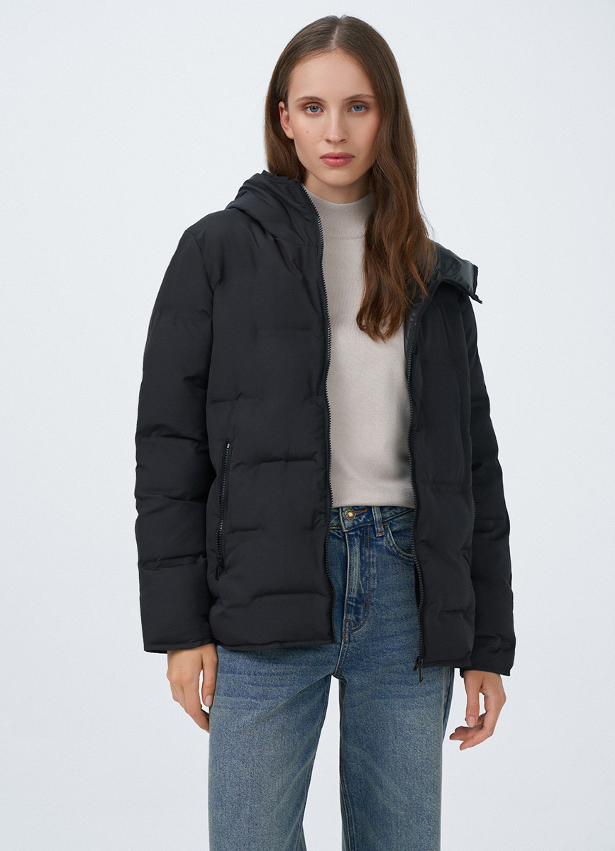 Куртка утепленная черная с фигурной стежкой 33959470299