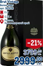 Вино игристое Абрау Дюрсо Империал Brut Vintage Белое брют п/у 0.75 л