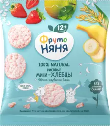 Мини-хлебцы Фрутоняня рисовые с яблоком, клубникой, бананом и пребиотиком c 12 мес 30г