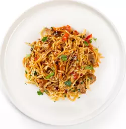 Вок со свининой и яичной лапшой в соусе терияки 300г