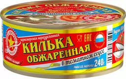 Килька Вкусные Консервы черноморская неразделанная обжаренная в томатном соусе 240г