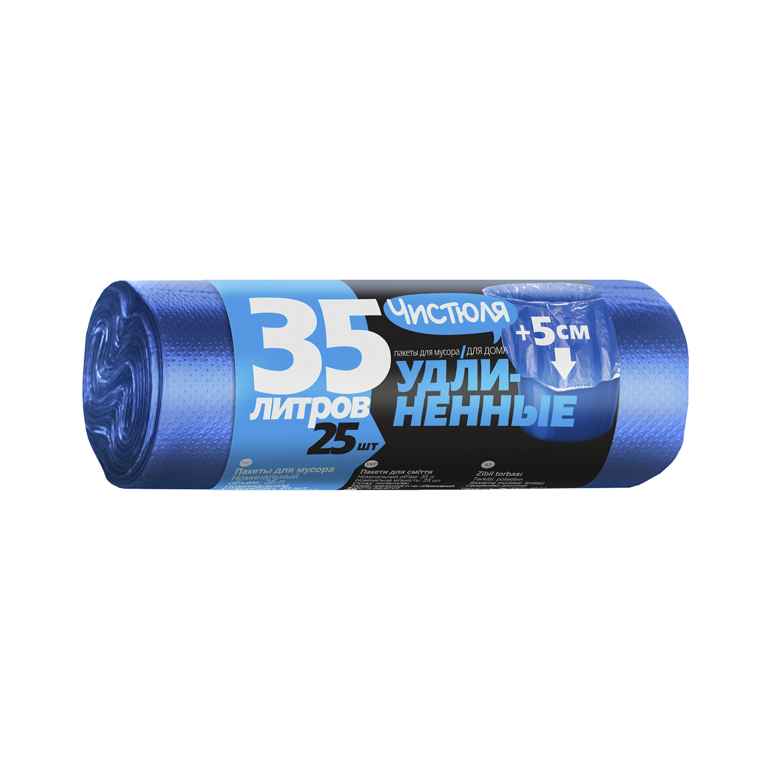 Пакеты для мусора Чистюля для дома удлиненные 35 л, голубой, 25 шт