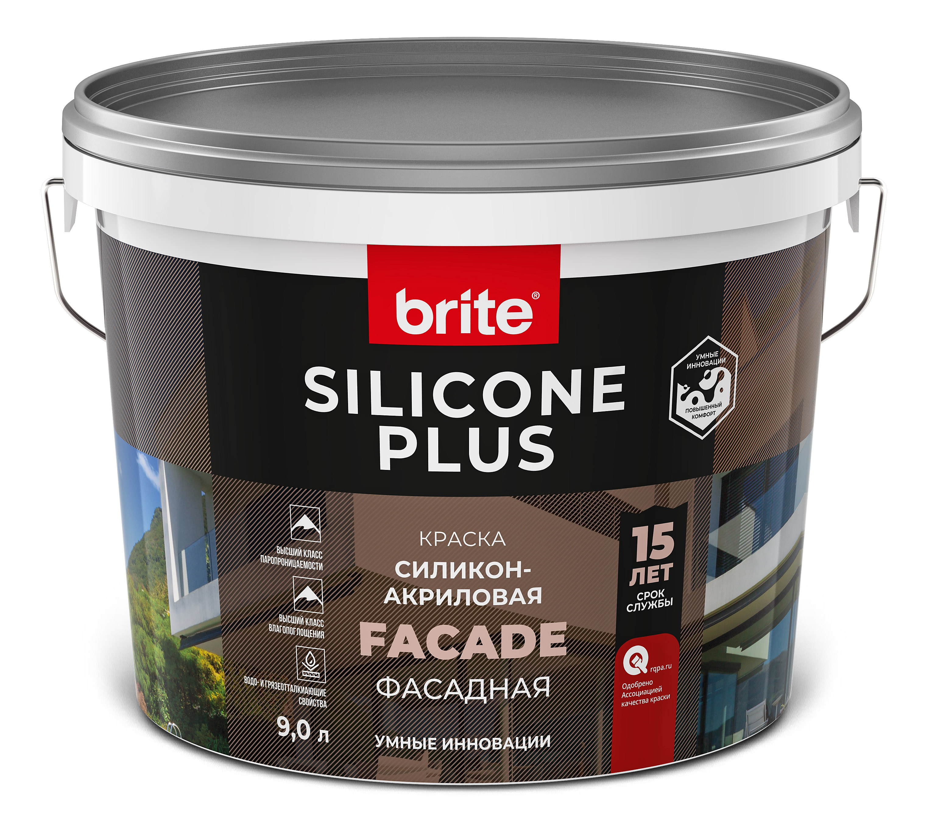 Краска Brite Silicone Plus фасадная силикон-акриловая база А, ведро 9 л