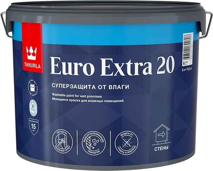 Краска интерьерная Tikkurila/tikkivala Euro Extra 20 полуматовая белая 9 л