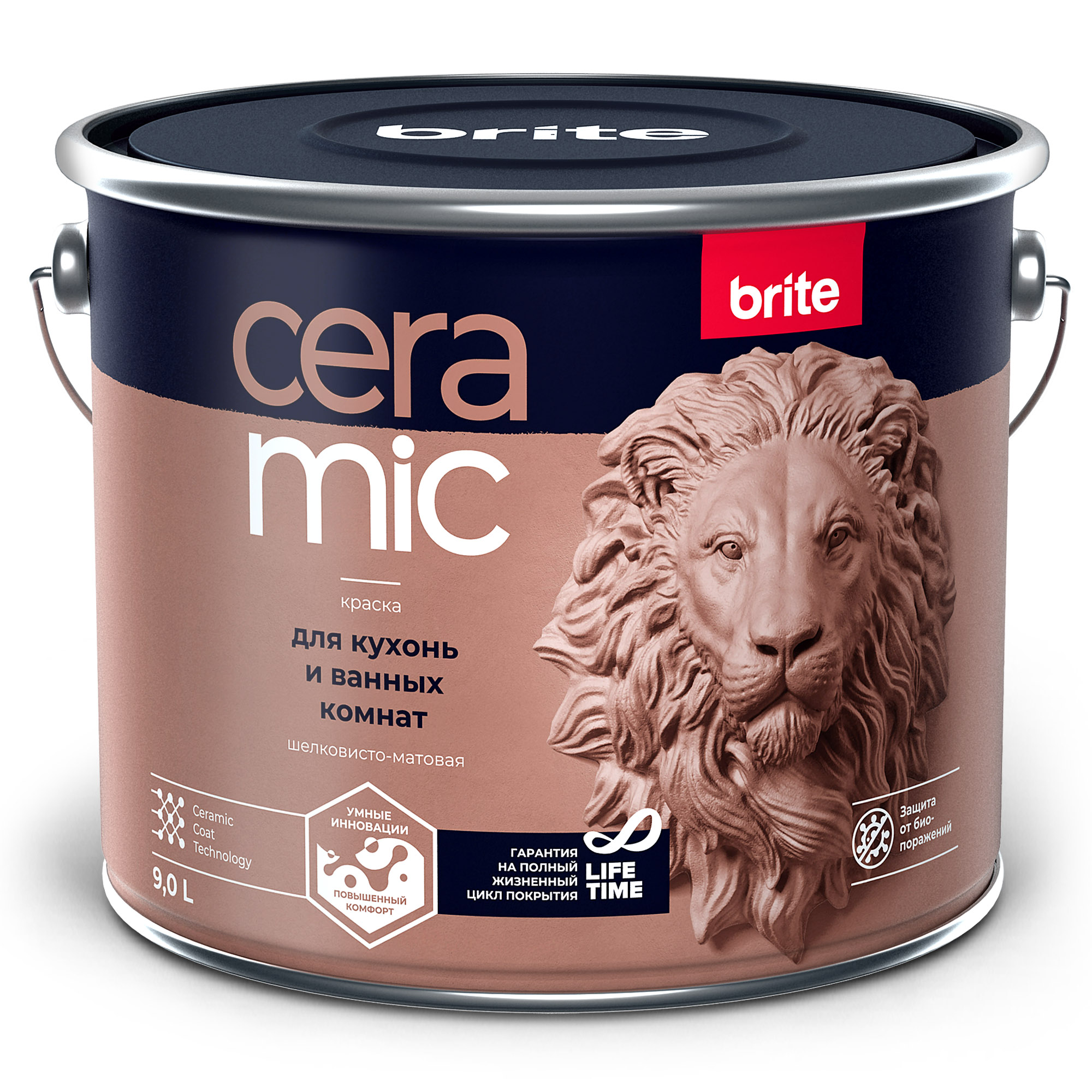 Краска Brite Ceramic для кухонь и ванных комнат база А, ведро 9 л