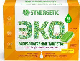 Таблетки Synergetic для посудомоечных машин без запаха, 55 шт