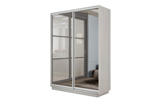 Шкаф-купе 2-дверный Slide-2 120х220х60 см, ясень анкор светлый, серебро, с двумя зеркалами 10669581