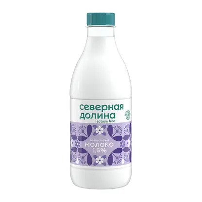 Молоко Северная долина безлактозное пастеризованное 1.5% 900мл
