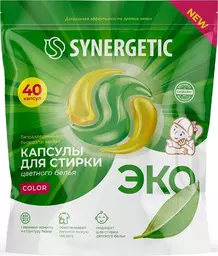 Капсулы для стирки Synergetic Color гипоаллергенные цветного белья, 40шт