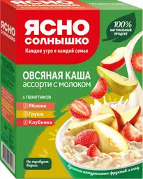 Каша овсяная с молоком Ясно Солнышко ассорти: с клубникой, яблоком, грушей, 6х45г