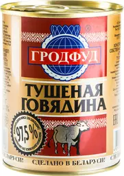 Говядина кусковая Гродфуд тушёная в собственном соку, 338г