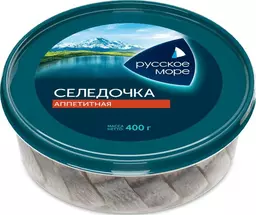 Сельдь Русское море Селедочка аппетитная филе-кусочки тихоокеанская слабосолёная в масле, 400г