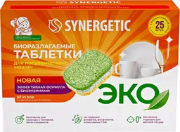 Таблетки для посудомоечных машин Synergetic биоразлагаемые бесфосфатные, 25шт