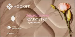 Салфетки бумажные белые двухслойные 19х20см Маркет, 100шт