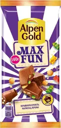 Шоколад Alpen Gold max fun молочный со взрывной карамелью, мармеладом и печеньем, 140г