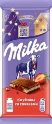 Шоколад Milka молочный с двухслойной начинкой клубника-сливки, 80г