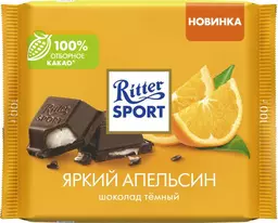 Шоколад Ritter Sport Яркий Апельсин тёмный с помадной начинкой, 100г