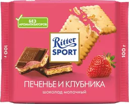 Шоколад Ritter Sport печенье и клубника молочный, 100г