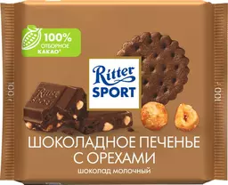 Шоколад молочный Ritter Sport Шоколадное печенье с орехами, 100г