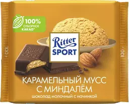 Шоколад молочный Ritter Sport карамельный мусс с миндалём, 100г