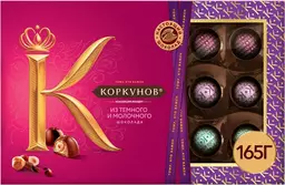 Коллекция конфет Коркунов шоколадных с цельным и дробленым фундуком, вафельной крошкой, светлой и темной ореховой начинкой, 165г