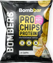 Чипсы Bombbar цельнозерновые протеиновые со вкусом четыре сыра, 50г