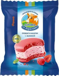 Мороженое Коровка из Кореновки пломбир малиновый в печенье Макаронс 15%, 70г