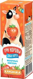 Молочный коктейль Три Коровы Два Кота со вкусом клубники 2.5%, 200мл