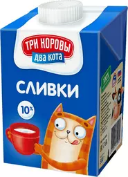 Сливки питьевые Три коровы два кота ультрапастеризованные 10%, 500мл