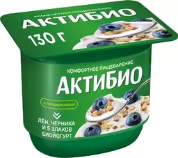 Биойогурт Актибио с черникой злаками и льняными семенами обогащенный бифидобактериями 3%, 130г