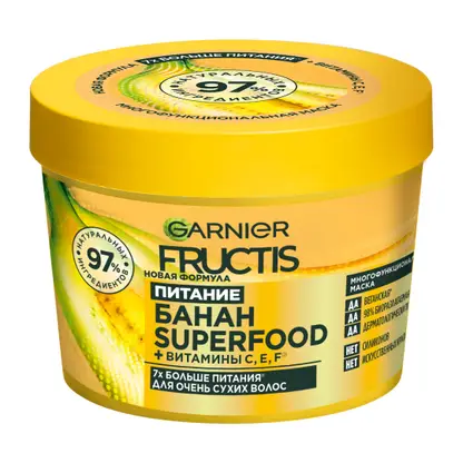 Маска для волос Garnier Fructis Superfood Питательная Банан 3-в-1 для восстановления питания и увлажнения 390мл