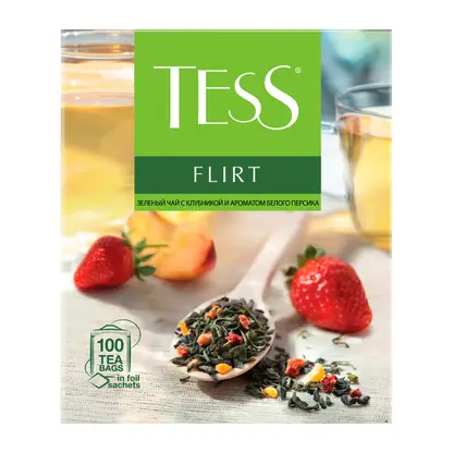 Чай зелёный байховый Tess Flirt с ароматом белого персика и клубники 100пак 150г