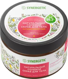 Скраб для тела Synergetic Антицеллюлитный, Пачули и ароматный бергамот, натуральный солевой, 300мл