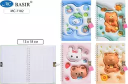 Блокнот на замке 18*13 см 48 л. спираль Басир Мишки (Мс-7182)