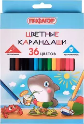 Карандаши цветные 36 цв. дер. Пифагор Веселые акулята (181819)